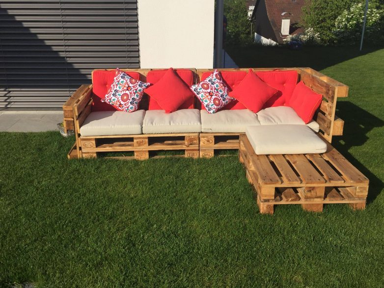 Из палетт можно соорудить отличную зону для отдыха.