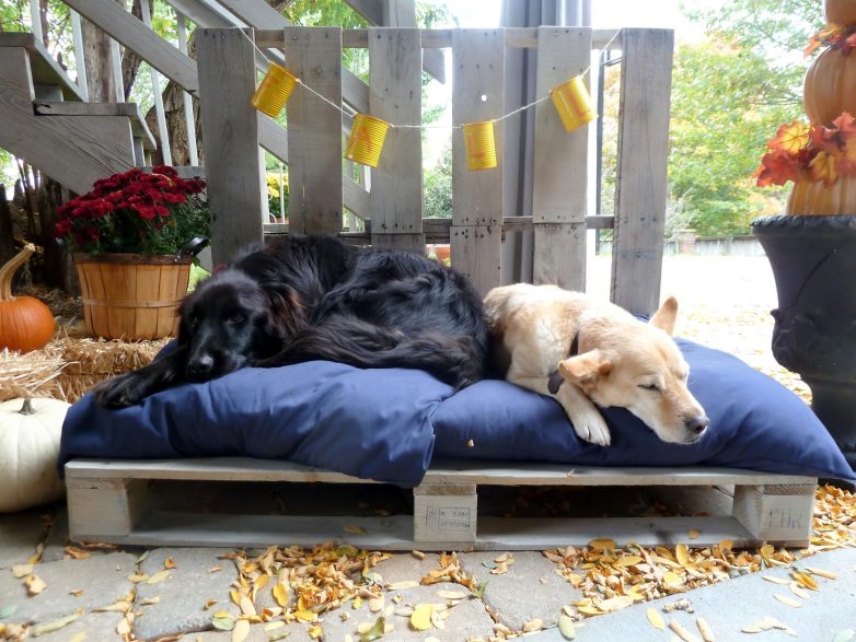 из поддонов получается прекрасная лежанка для домашних питомцев.