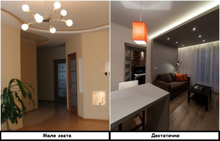 Как показывает практика, существует очень мало квартир, в которых хорошо поработали с освещением. Многие ограничиваются одной-единственной люстрой, считая, что этого достаточно для крохотной комнаты. На самом деле, чем меньше помещение, тем лучше оно должно быть освещено. Темные углы делают комнату мрачной, тусклой, что является непозволительным в малогабаритке. Постарайтесь, чтобы в квартиру попадало как можно больше естественного света (возможно, придется отказаться от штор), а также хорошо продумайте искусственное освещение.