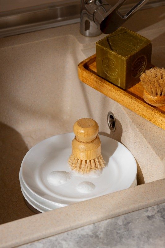 Добавьте кухонный текстиль в модных оттенках: полотенца, подставки под горячее или скатерти. Поставьте стильные мыльницы, дозаторы для моющего средства или даже небольшую доску для записей. Такие мелочи делают кухню живой и уютной.
