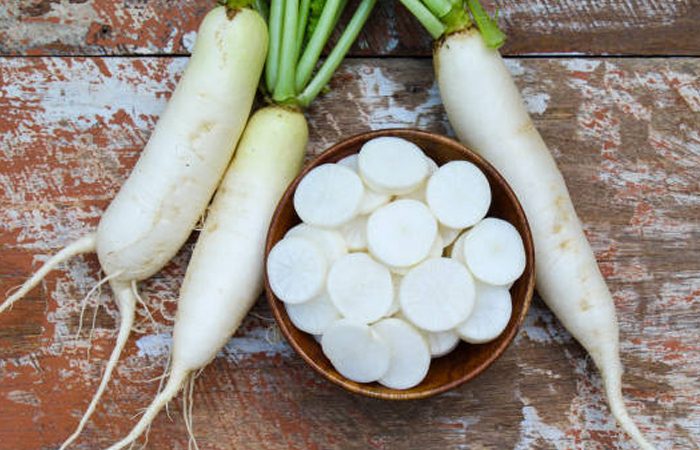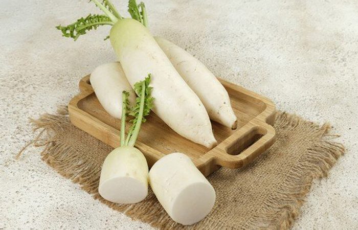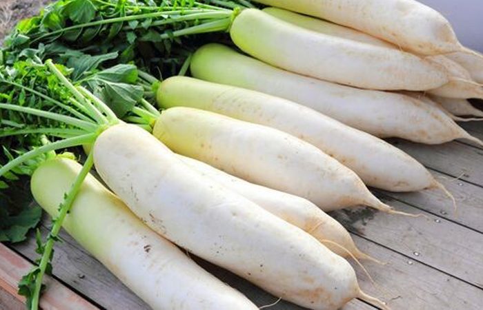 Дайкон по вкусу напоминает редис или редьку, у которых отсутствует горечь.