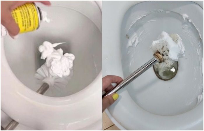 Если вы давно не чистили унитаз и известковый налет успел въесться в его стенки, попробуйте очистить поверхность при помощи пены для бриться. Удивительно – это средство не содержит никакой кислоты и других агрессивных компонентов, но отлично отбеливает сантехнику. Хозяйки, которые давно пользуются этим лайфхаком, говорят, что до сих пор не понимают, как это работает, но эффект прекрасный. Возможно, все дело в полирующих и очищающих свойствах пены.