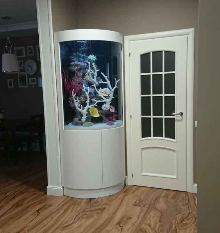 Стена или ниша. Встроенные аквариумы в нишах или углах позволяют сберечь площадь и стать органичным дополнением интерьерного пространства.