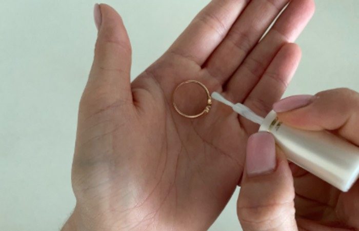 Вам даже не придется покупать специальные чистящие средства. Ведь на помощь придет обычный бесцветный лак для ногтей, который найдется у каждой в косметичке. Именно им стоит смазать кольца с внутренней стороны. Такое простое действие позволит предотвратить потемнение.