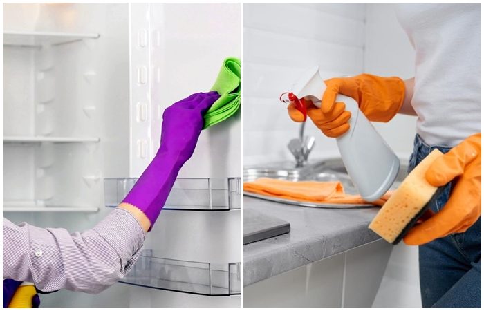 Ещё одна распространённая ошибка – поверхностная уборка холодильника. Большинство людей ограничивается тем, что время от времени протирает полки внутри, считая, что этого вполне достаточно. При этом ручки, дверцы, резиновые уплотнители и выдвижные ящики чаще всего остаются без внимания. К сожалению, в них частенько скапливается влага, остатки еды и плесень, которая постепенно приводит к неприятному запаху и развитию бактерий. Поэтому очень важно мыть холодильник хотя бы раз в месяц. Речь не идёт о разморозке, а именно о полноценной чистки всех поверхностей. Лучше всего использовать мягкие чистящие средства без ярко выраженного запаха, чтобы потом продукты не впитали лишние ароматы. Подойдёт раствор соды и уксуса, разведённого водой – он безопасен, эффективно удаляет грязь и нейтрализует запахи. Особое внимание стоит уделить уплотнителям на дверцах. Туда часто затекает влага и попадают мелкие частицы продуктов. Протереть их можно ватными палочками. А вот ящики для овощей и фруктов лучше всего вымыть с мылом, полностью высушить и только потом вернуть на место. Также не забывайте и про внешнюю часть холодильника. Ручки и дверцы пачкаются не меньше, чем полки и ящики внутри.