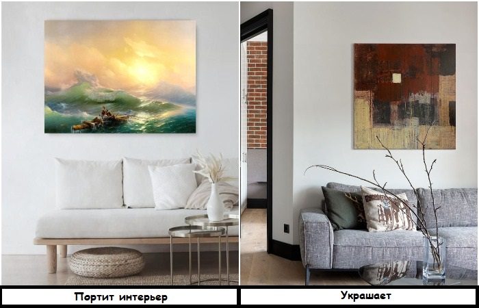 Гораздо актуальнее в интерьере будут смотреться работы современных художников. Также можно поискать в мастерских настоящие картины. Да, эти полотна будут не такими знаменитыми, как «Девятый вал» Айвазовского или «Рождение Венеры» Ботиччели, но они гораздо лучше впишутся в обстановку квартиры, станут ее изюминкой. В них есть индивидуальность и душа мастера, и это самое главное.