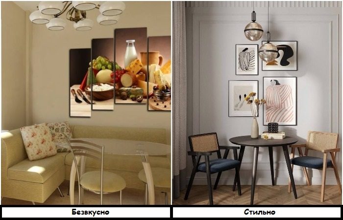 Еще 10-15 лет назад для украшения квартир часто использовали модульные картины. Обычно они представляли собой недорогую фотопечать с разбитым на несколько частей изображением. Сейчас такой декор – это моветон. Он не вписывается ни в один современный интерьер, и удешевляет даже самую дорогую обстановку.