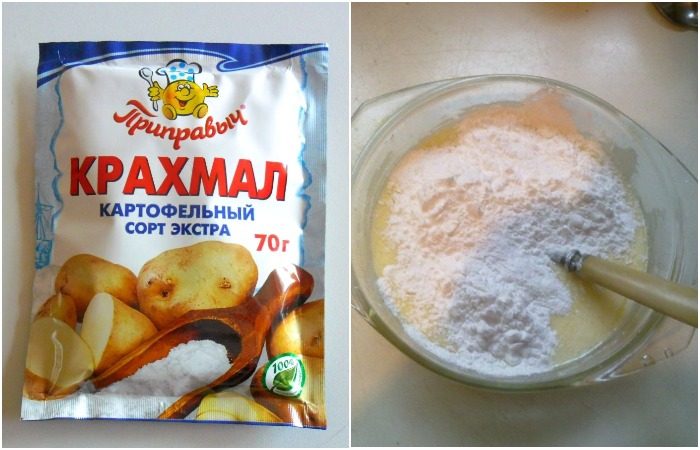 • Стабилизирует начинку. Крахмал является прекрасным загустителем, когда речь заходит о начинке и соусе для тортов, а также других десертов. Благодаря ему начинка не вытекает, а остается внутри пирога.