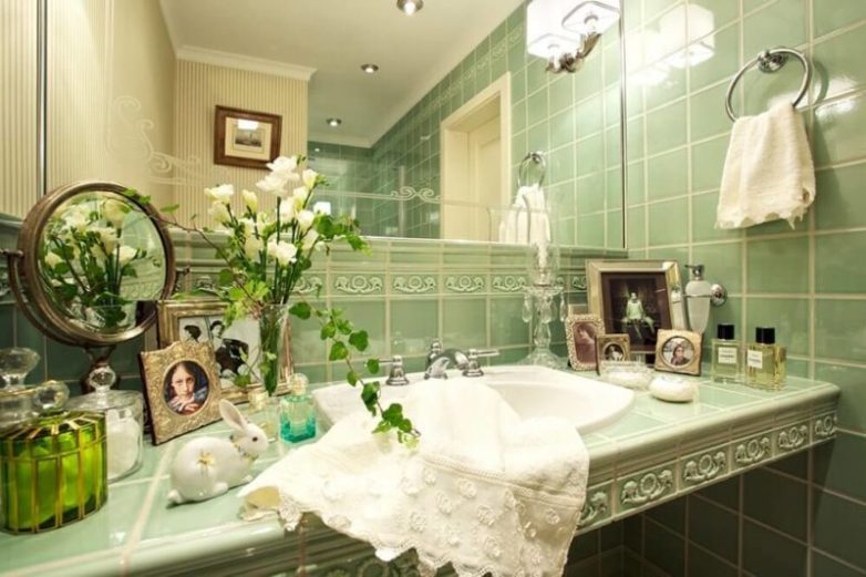 Огромное количество декоративных элементов лучше не использовать в маленьких ванных комнатах. Здесь действует правило: чем меньше, тем лучше