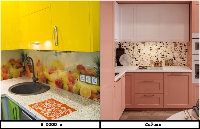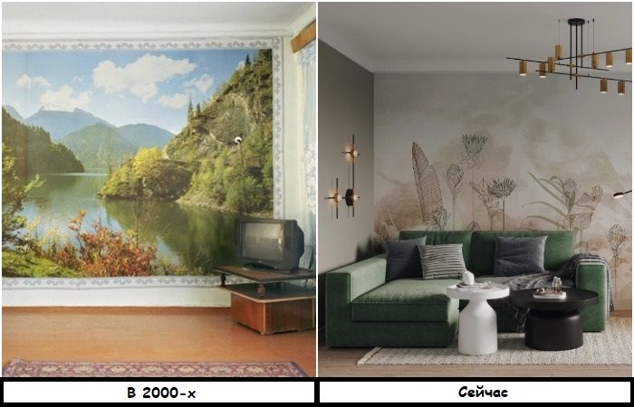 Ярким признаком интерьера нулевых были шкафы-купе с рисунком на дверцах, фотообои, кухонные фартуки с 3D-эффектом (все же помнят эти гигантские фрукты и овощи, которые сопровождали нас во время завтрака, обеда и ужина?) Они выглядели настолько красиво и необычно, что сразу вызвали восторг у населения. Такие вещи использовали для создания акцентов в интерьере, и долгое время они действительно были востребованы. Но, увы, ничто не вечно.