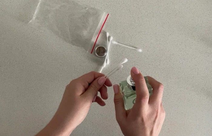 Наша следующая бытовая хитрость состоит в том, чтобы минимизировать затраты, но всегда оставаться с любимым ароматом. Для этого даже не придется покупать специальные флакончики. Достаточно лишь сходить в ванную комнату за ватными палочками. Именно их следует смочить в любимых духах и поместить в пакетик с клипсой. Это простое действие позволит всегда под рукой иметь немного любимого аромата. Просто достаньте ватную палочку из пакета и проведите ею за ушами и на запястьях. Так вы без труда обновите аромат и не потратите на это ни копейки.