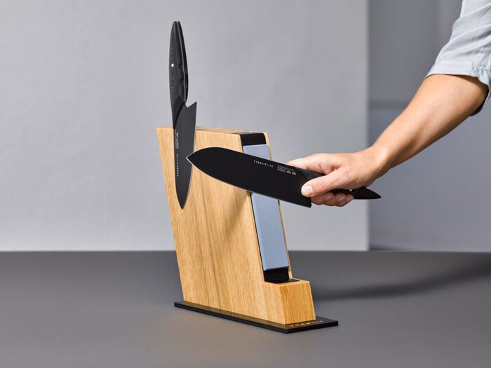После того как нож доведён до нужной формы, его нельзя просто бросить в ящик с вилками и крышками. Каждое столкновение с другим предметом оставляет следы на кромке. Со временем это превращает острый инструмент в нечто неровное и тупое.