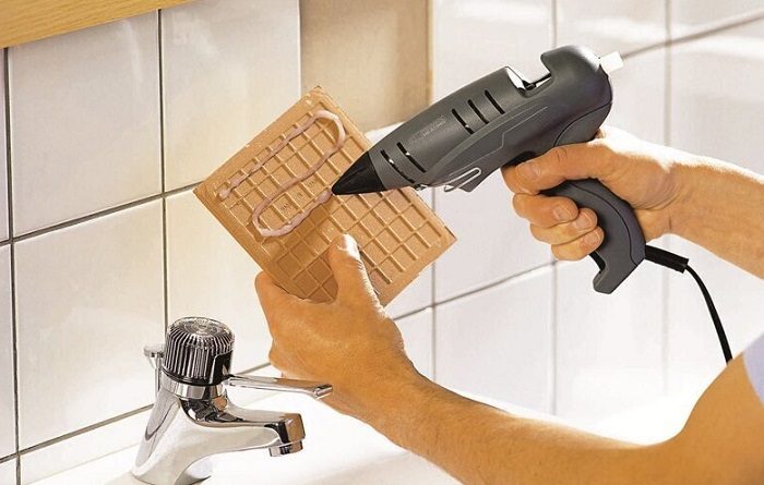 Если отвалилась плитка, ее часто клеят обратно термоклеем