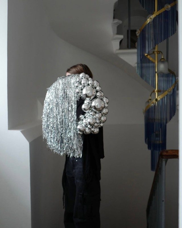 Забудьте про скучную классику. Венок из дождика и серебряных шаров выглядит дерзко и современно. Идеально для интерьеров в стиле лофт или минимализм. Разместите его над кроватью, на стене или даже на полке.