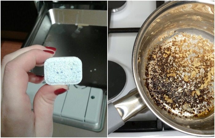 Отвлеклись на пять минут, но этого хватило, чтобы кастрюля пригорела? Ничего страшного, такое случалось практически с каждой хозяйкой. Можно хвататься за голову причитать и думать, почему так получилось, а можно взять в руки таблетку для посудомойки и очистить нагар. Да-да, вы все правильно поняли. Не меламиновую губку, не средство для посуды, не металлический скребок, а именно «посудомоечную» таблетку.