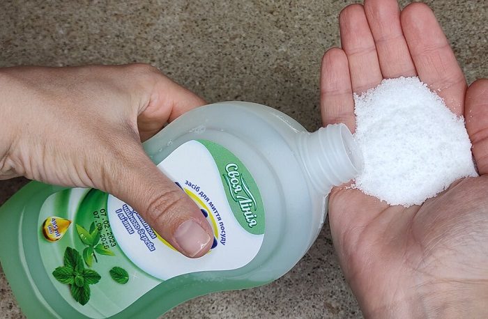 Добавьте соль в средство для посуды