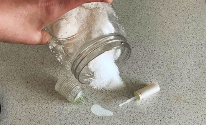 Советуем не ждать, а действовать предельно быстро и эффективно. Сбегайте на кухню, возьмите сахар и щедро посыпьте следы от лака. Подождите пять минут, пока жидкость впитает в себя кристаллики, а затем осторожно уберите ее мягкой тряпкой или бумажным полотенцем. Вуаля – от лака на полу не останется даже следа!