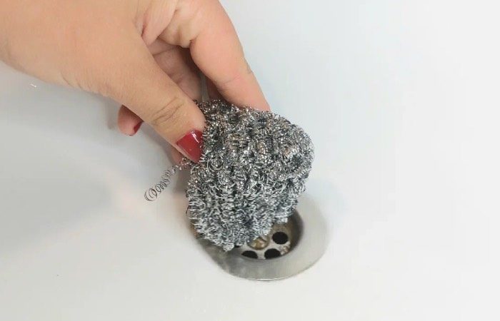 Поможет нам в этом вопросе самая простая металлическая губка. Можно взять даже ту, что вы уже планировали выкинуть. Именно ее необходимо опустить в слив и немного покрутить. Она легко соберет на себе весь мусор и не даст ему опуститься в трубу. А следовательно, предотвратит появление засора. Просто делайте это регулярно после мытья посуды и готовки. И вы навсегда забудете про засоры.