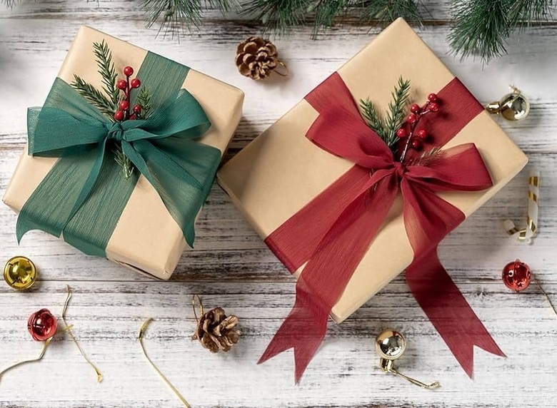 Но и не стоит забывать про минимализм с характером. «Минимальное графическое оформление, нейтральная палитра и акцентный элемент: веточка эвкалипта или ели, металлическая бирка, яркий интерьерный шнур, новогодняя игрушка», — объясняет эксперт. Такой формат особенно популярен у люксовых брендов и у тех, кто ценит утонченность без вычурности.