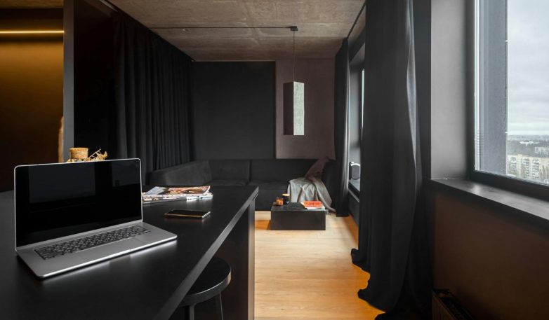 Темные стены, черная мебель и минимум цвета могут казаться воплощением мужского стиля. Но преобладание исключительно черно-серой гаммы делает пространство мрачным и унылым. Отсутствие цветовых акцентов и разнообразия текстур выдает недостаток вкуса и смелости в оформлении. Чтобы интерьер не выглядел как пещера, разбавьте темные тона светлыми деталями, яркими акцентами или натуральными материалами.