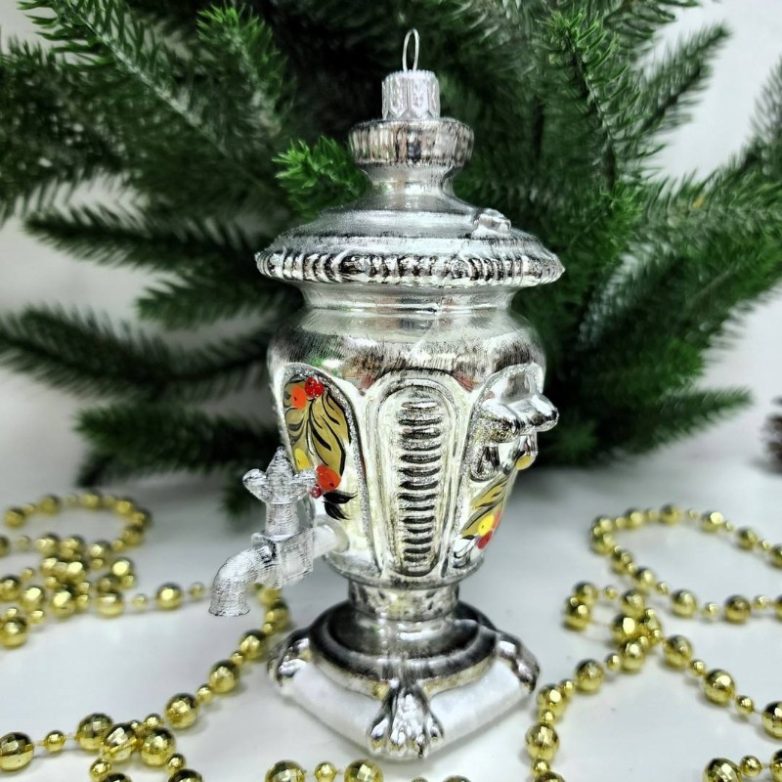Расписные элементы – идеальный выбор. Хохлома, гжель, матовые шары с орнаментом, фигурки ангелов, птиц, лошадок. Они добавляют характер, но не перегружают.