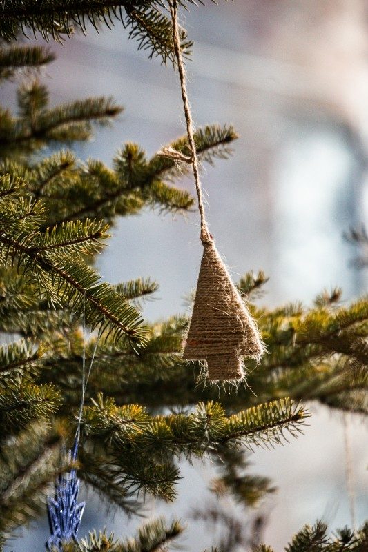 Хорошо работают деревянные подвески – звезды, снежинки, домики. Соломенные снежинки – отдельный must-have: легкие, натуральные, универсальные.