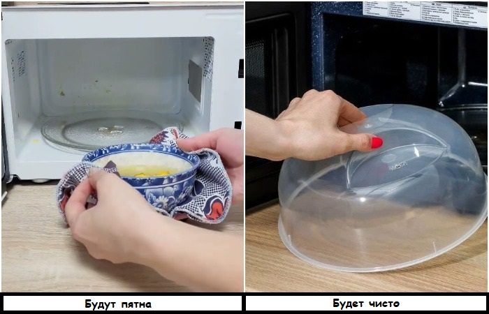 • Накрывайте тарелку, в которой разогреваете еду, специальной крышкой. Это предотвратит «разбрызгивание» пищи в процессе нагрева.
