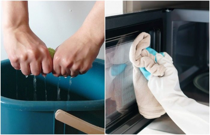 Казалось бы, чем может навредить микроволновке обычная вода? Однако именно с ней следует быть максимально осторожным. Не допускайте, чтобы с прибором контактировали мокрая тряпка или губка – хорошо отжимайте их перед тем, как мыть микроволновку. Причем, это правило касается не только внутренней камеры, но и внешних стенок СВЧ-печи. Если вода попадет в нагревательные элементы и другие механизмы, есть риск, что прибор сломается.