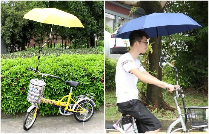 В Японии запрещено ездить на велосипеде, держа зонт одной рукой. По этой причине на руль устанавливают специальной держатель, в которой можно установить зонтик, чтобы комфортно себя чувствовать. Кстати, японцы используют зонт не только от дождя, но и от солнца, поэтому приспособление актуально почти круглый год.