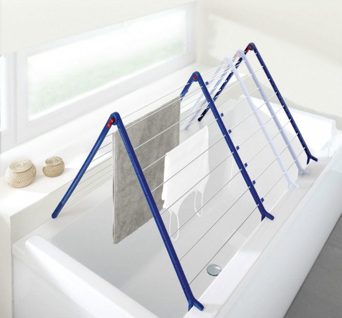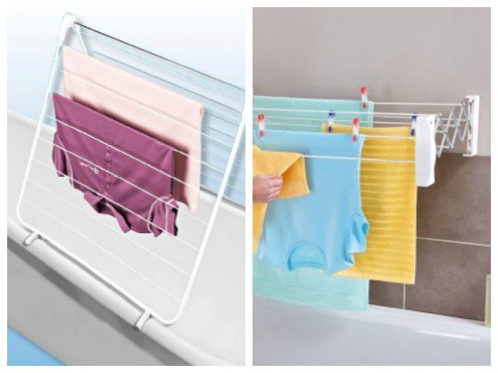 Сушилки для белья на ванну – настоящие палочки-выручалочки. Они просты в использовании, лёгкие, мобильные и складывающиеся. Их удобно использовать для деликатных вещей, которые нельзя выжимать. Так вода будет стекать, непосредственно в ванну. Также есть модели, на которых можно раскладывать вещи, чтобы они не потеряли свою форму.