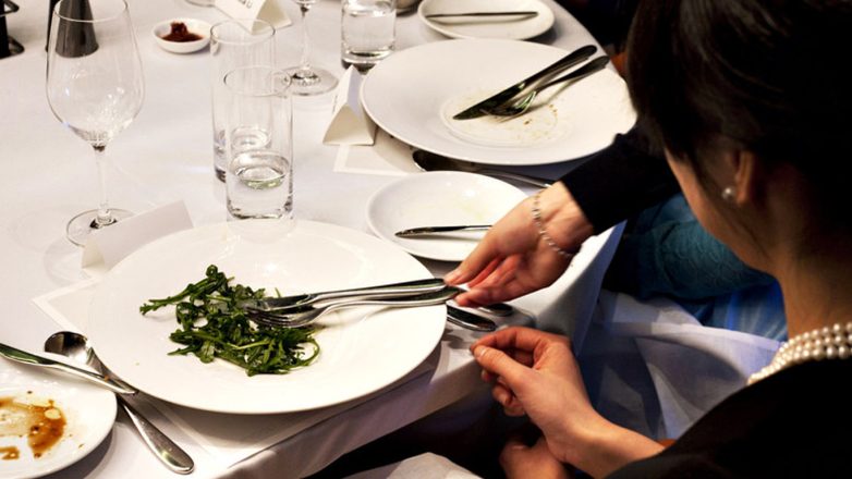 Некоторые блюда предусматривают несъедобные компоненты, такие как косточки или кожура. Во время ужина их не нужно прятать в салфетку или за тарелку. На самом деле правильно их оставлять в верхней части плоской тарелки.