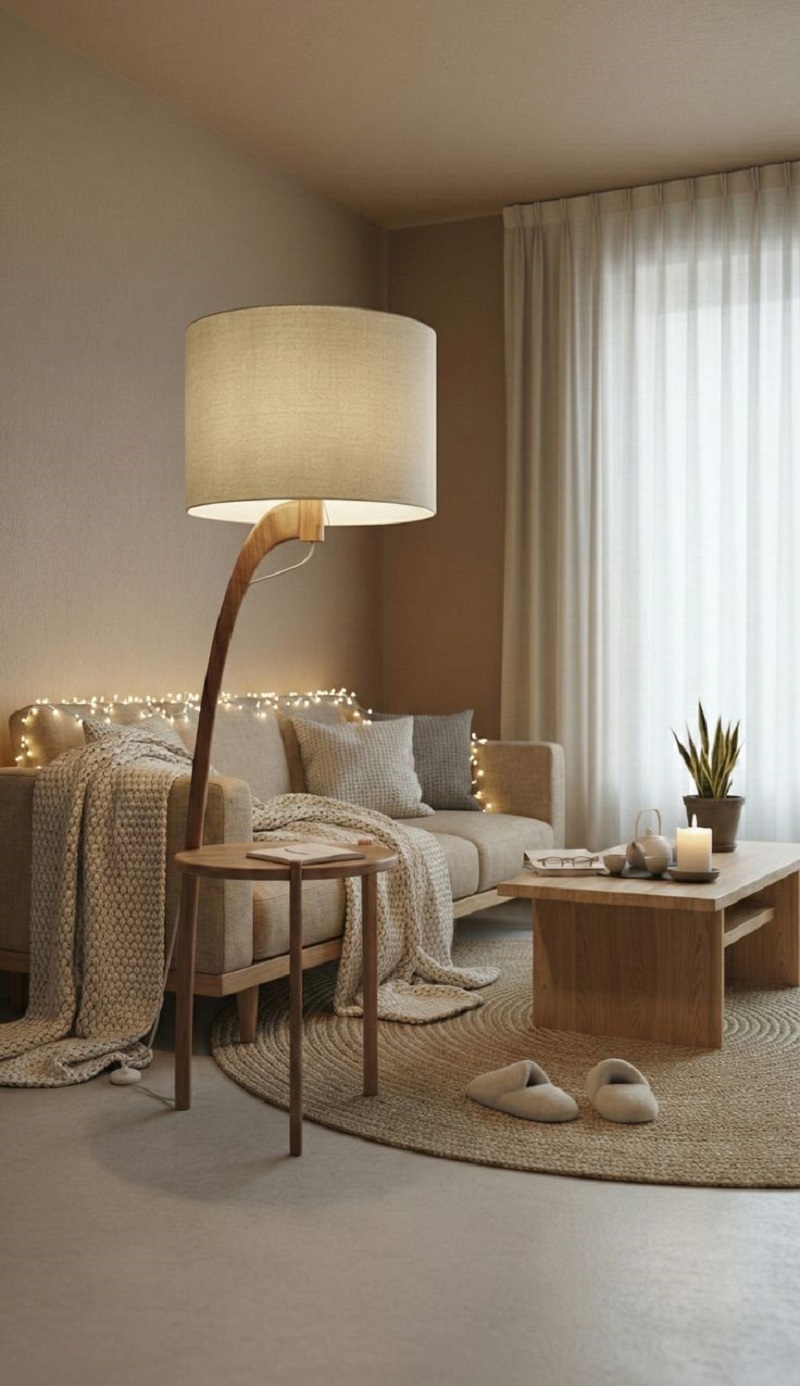 Зимой естественного света недостаточно, и искусственное освещение берет на себя не только функциональную, но и терапевтическую роль. Холодный верхний свет разрушает атмосферу релакса, поэтому в уголке для отдыха предпочтение отдается многоуровневому освещению с теплой температурой (2700-3000К).«Торшер с регулируемой яркостью, настольная лампа, LED-лента за изголовьем дивана или встроенная подсветка полок создают мягкое рассеянное свечение. Важен не столько уровень освещенности, сколько возможность его контролировать. Диммеры позволяют адаптировать свет под время суток и настроение: яркий для чтения, приглушенный для медитации или вечернего чая», — рассказывает архитектор.