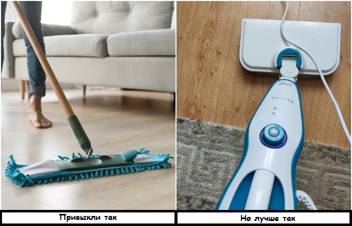 Не любите использовать агрессивную бытовую химию во время уборки? Тогда справиться с микробами и бактериями вам поможет паровая швабра. Все, что вам нужно сделать – налить воду в специальный отсек и начать мыть пол обычными движениями. Устройство нагреет воду до 100 градусов и в процессе работы будет подавать пар под давлением. Именно он поможет справиться с загрязнениями и бактериями, а также продезинфицирует поверхность.