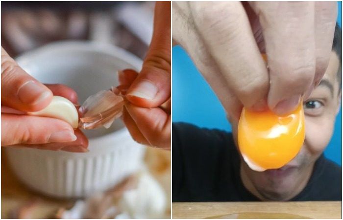 Натрите руки чесноком и достаньте желток