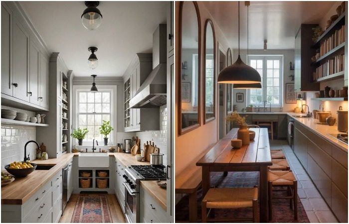 Узкая, вытянутая кухня в квартире – это, конечно, неудобно, но и не критично, как многие думают. Просто она требует особого подхода в процессе оформления. Мы рассказываем, какие дизайнерские приемы использовать, чтобы сделать комнату эстетичной и комфортной как для готовки, так и для трапез.