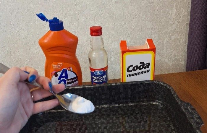 Итак, чтобы отмыть жир с противня, необходимо вооружиться содой, уксусом и любым средством для мытья посуды. Для начала засыпьте его содой. Потом добавьте уксус и немного подождите. Далее идет черед чистящего средства. После чего заливаем все кипятком и оставляем на десять минут. Слив воду, вы заметите, что от жира не осталось и следа.