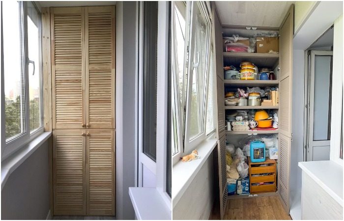 На утепленной лоджии можно хранить сезонную одежду и обувь, запасы воды и бакалеи, консервацию, посуду, бытовую химию – в общем, что вашей душе угодно. Главное – правильно все расставить, чтобы было вместительно и удобно.