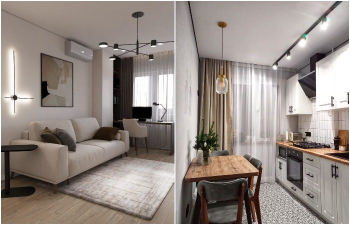 И на кухне, и в гостиной должно быть хорошее освещение