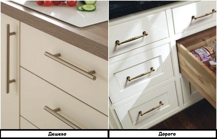 Как понять, что в квартире делали ремонт на скорую руку или вложили в него недостаточно средств? Нужно просто взглянуть на фурнитуру. Пластиковые блестящие ручки, которые обычно идут «в комплекте» с кухонным гарнитуром, удешевляют даже качественные изделия.