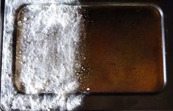 А точнее, советы наших бабушек, которыми мы щедро делимся в наших статьях. Так вот, для того чтобы отмыть застарелый нагар, следует вооружиться пачкой самой обычной соды. Засыпьте ею весь противень. После чего порционно добавляйте воду. Смешивайте соду с водой старой зубной щеткой до образования кашицы, после чего оставьте противень на час. Далее нужно будет лишь смыть соду чистой тряпкой. От нагара не останется и следа.