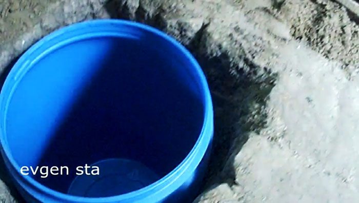 Запените щели между бочкой и землей монтажной пеной. Старайтесь делать глубину запенивания максимально возможной.