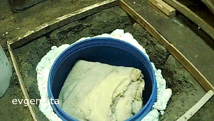 Перед запениванием обязательно накрывайте бочку крышкой, не допускайте попадания вовнутрь земли и материала. После полного застывания мини-погреб готов к использованию. Складывайте в него овощи и фрукты, для предупреждения подмерзания сверху их можно накрыть плотной теплой тканью.