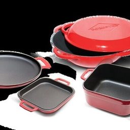Bот это да! Главная особенность — антипригарное керамическое покрытие. В коллекции чугунный террин с крышкой-сковородой, казан-вок с крышкой-сковородой и 2 отдельные сковороды: рифлёная сковорода-гриль и классическая.