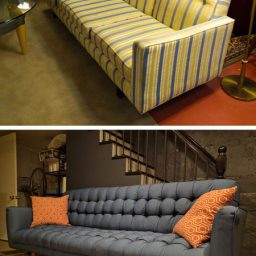 Имея дома старый диван, внешний вид которого оставляет желать лучшего, вовсе не обязательно избавляться от него. Попробуйте перетянуть добротную мебель с четко отлаженным раскладным механизмом, придав ему современный вид.
