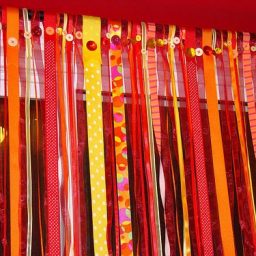 Предлагаю вам смастерить красивый занавес — штору из лент для двери или окна.