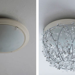 Если у нас сохранились плафоны, украсим ими сад. Повесим их на солнышко. И будем любоваться игрой солнечных лучей в стекле. Красиво.