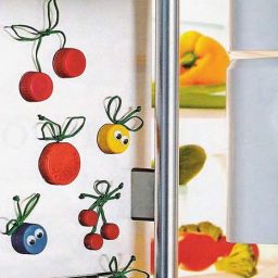 Забавные магниты на холодильник можно сделать из обычных крышек от соков, йогуртов, пластиковых бутылок. Наверняка эта идея придется по вкусу и взрослым, и детям.